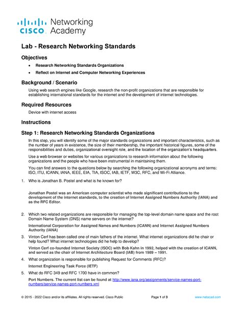 Read Online LAB RESEARCHING NETWORKING STANDARDS CISCO ANSWERS mobipocket